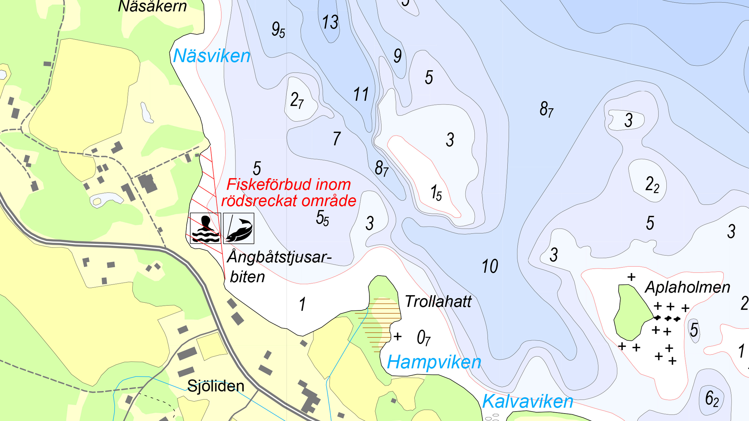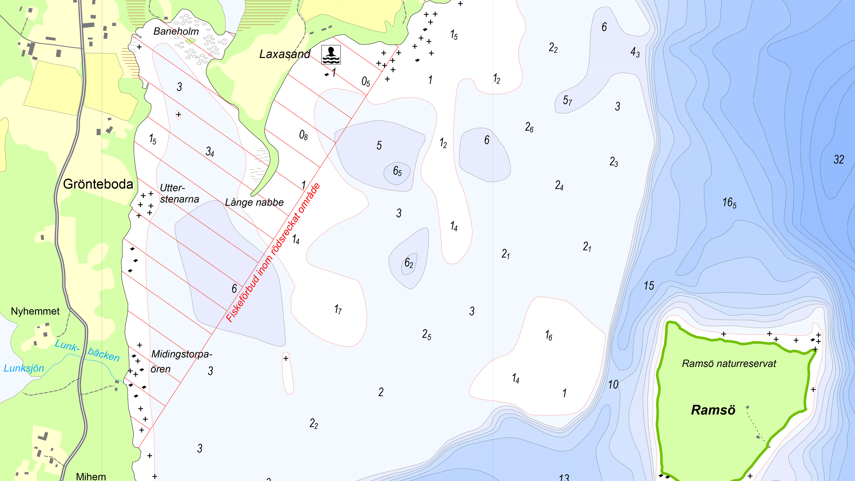 Djupkarta finns till försäljning! Fiske i Mien lämpar sig bäst från båt som kan hyras av fvof.